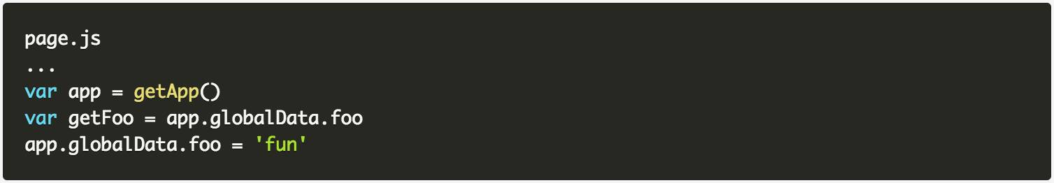 然后在页面中,可以通过 getApp()方法获取到全局应用对象,可以对全局变量进行读取并更改: