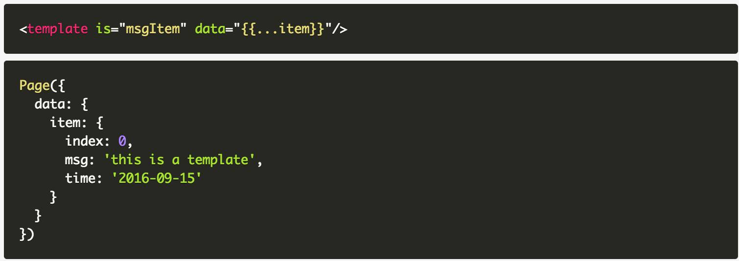传入模板的除了变量,还可以是事件方法对象。例如,模板中的点击事件,可以传递到使用模板的元素中。