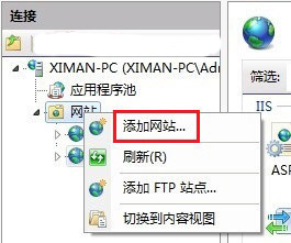 如果有多个网站,在IIS左边“网站”右键“添加网站”