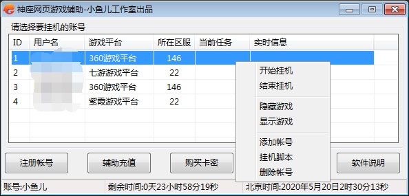神座网页游戏辅助正式版终于快要发布了. 正式版本发布之后,免费版本还是继续提供给大家使用.只是不会更新.以后主要是正式版本为主.大家在使用正式版本的时候,需要注册一个帐号,新帐号从注册的时候开始,免费使用24小时